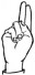 На ћирилици написано ДИНА КРГА састоји се из 8 слова [?]. Исписано ћириличном једноручном азбуком за глувонеме: